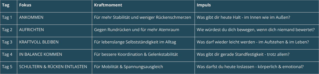 zu einer kleinen, alltagstauglichen Entdeckungsreise zurück zu dir und zu deinem Körper. Und der muss nicht „perfekt“ sein – Natur ist auch nur unperfekt schön. Er sollte jedoch spürbar sein und gesund bleiben.